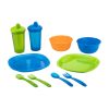 The Parents Choice Tableware Gift Set is perfect for parents with a baby age four months and up. It could be a late baby gift or a just because purchase at any time. The set includes two sets of fork, spoon, bowl, plate and no-spill sippy cup, just perfect for introduction of solids. All are made from brightly colored plastic, in coordinated colors.